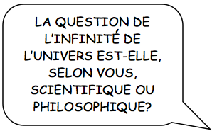 La question « l'univers est-il infini ? » est une question scientifique dans la mesure où la science connaît la façon d'y apporter une réponse déterminée. |